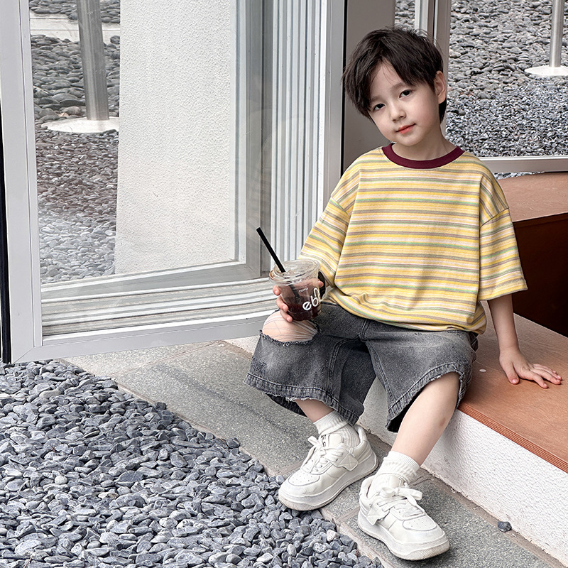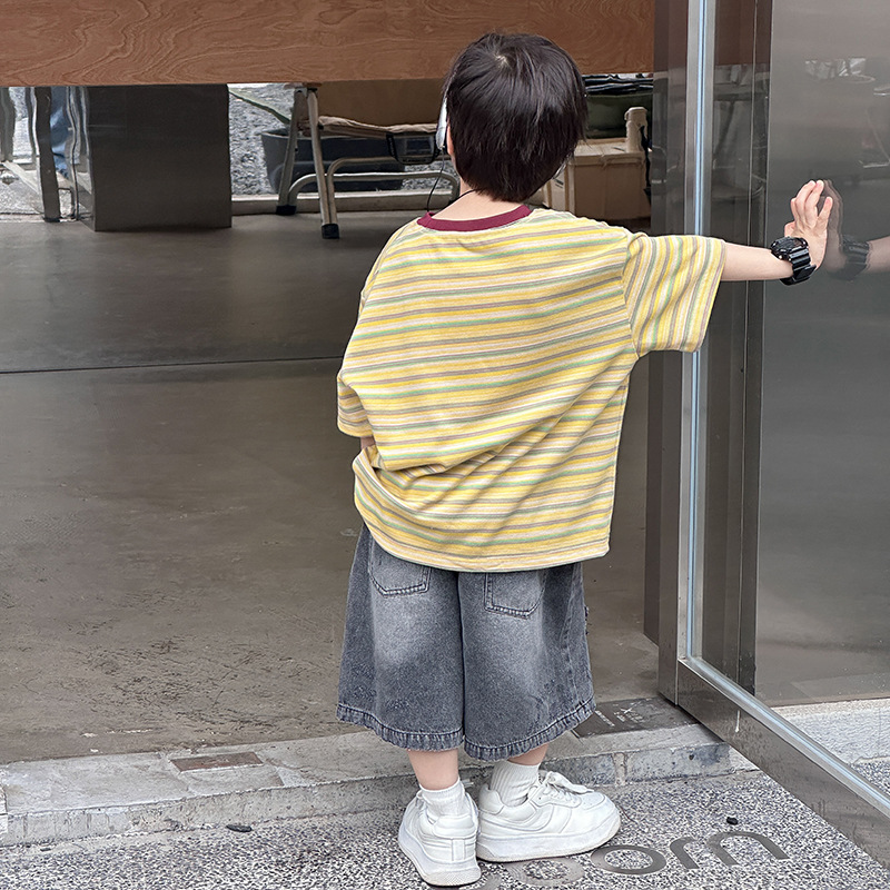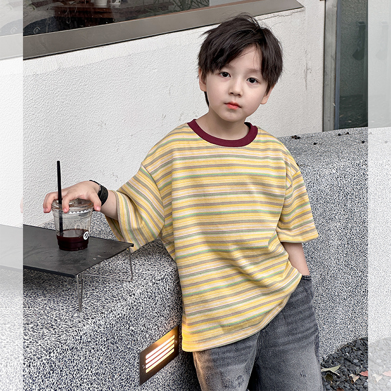 [3.28 Merchants Festival 200-20 1 hour before postage] children's jacket summer contrast striped short sleeve T-shirt