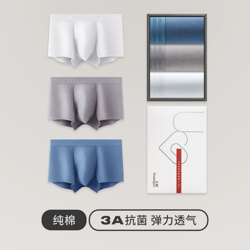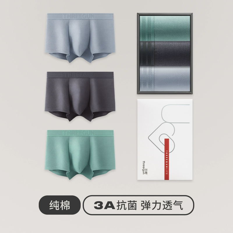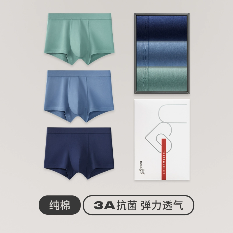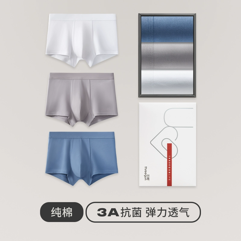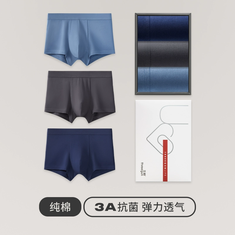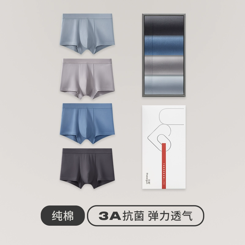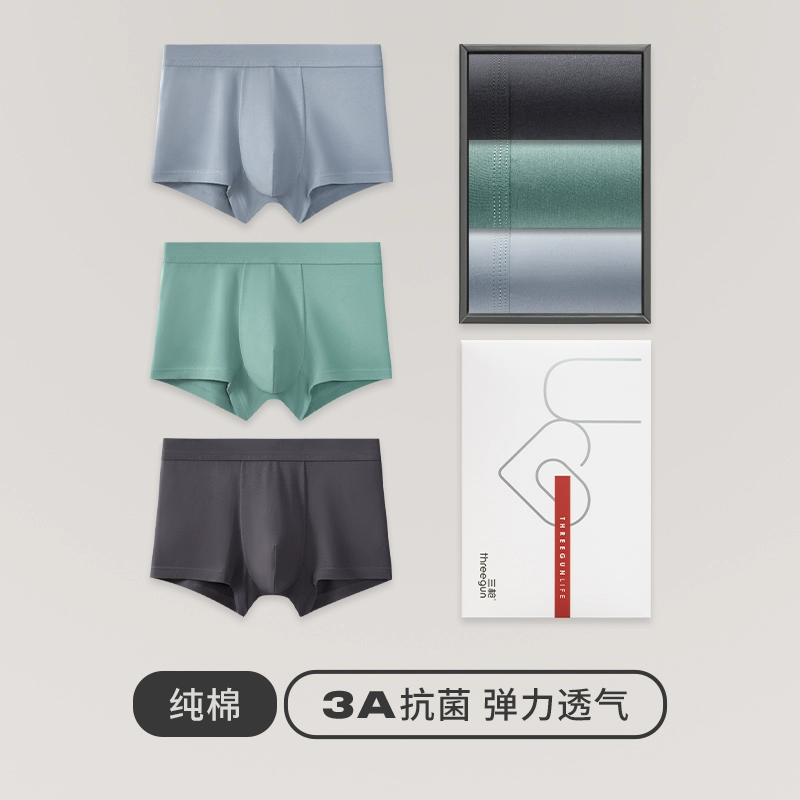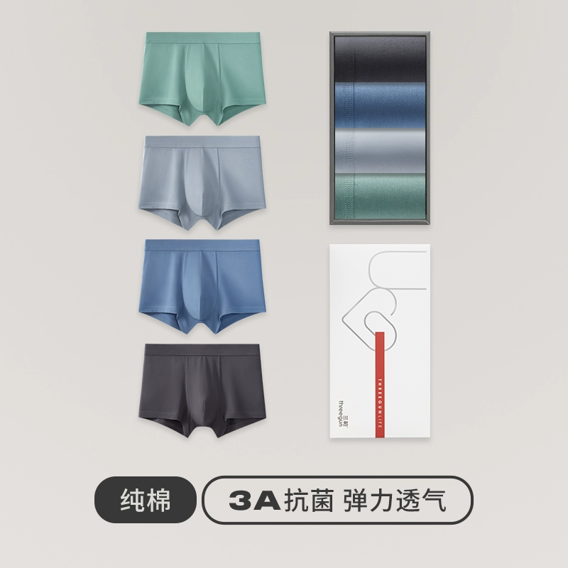 3/4 pack of three-gun men's underwear pure cotton antibacterial youth boxer spring and summer breathable elastic large size students anti-wear