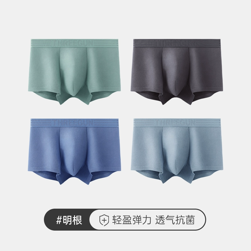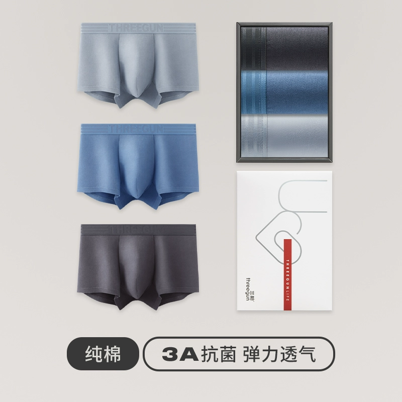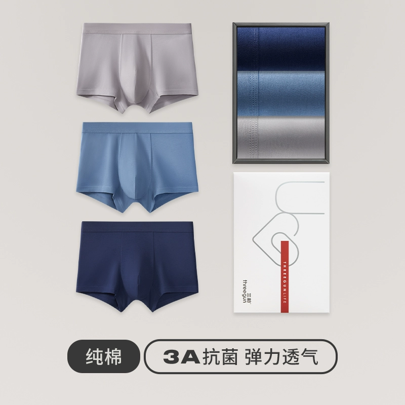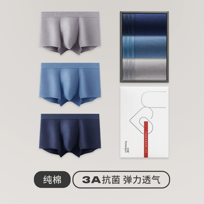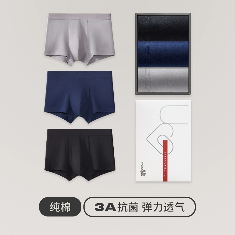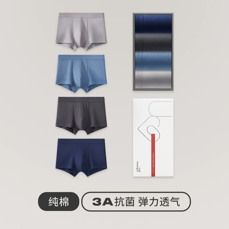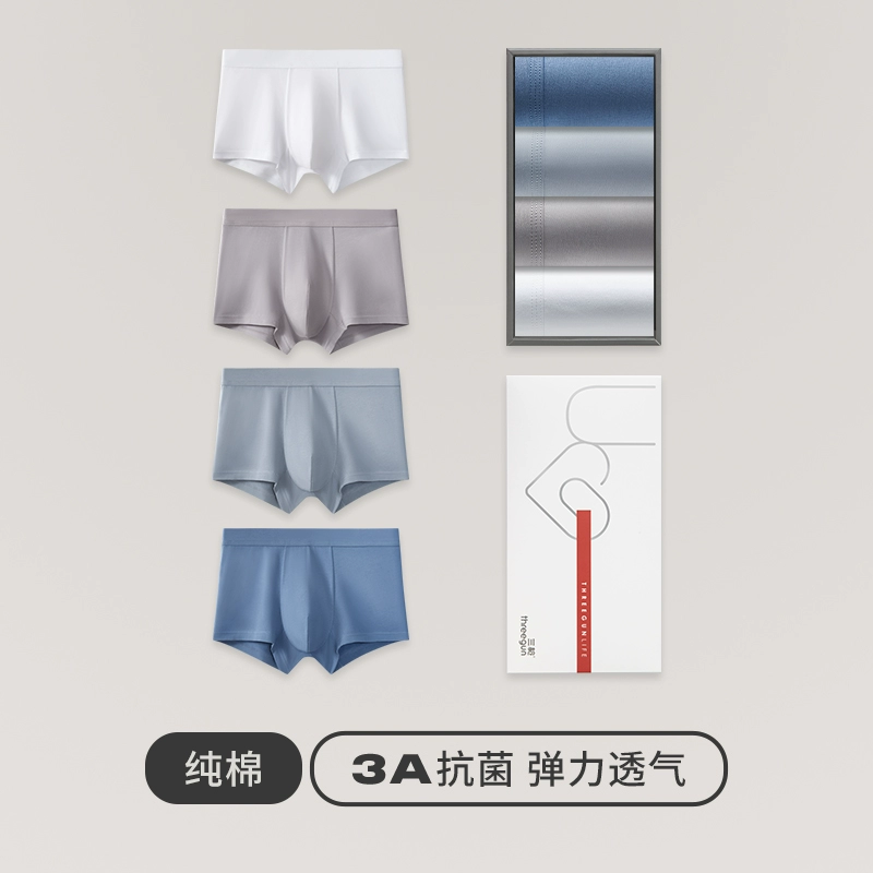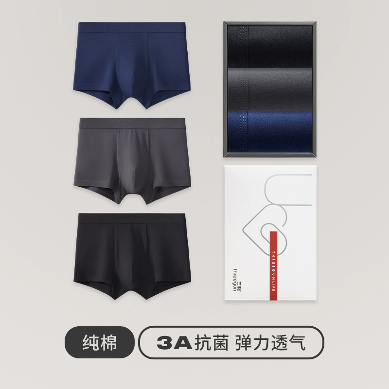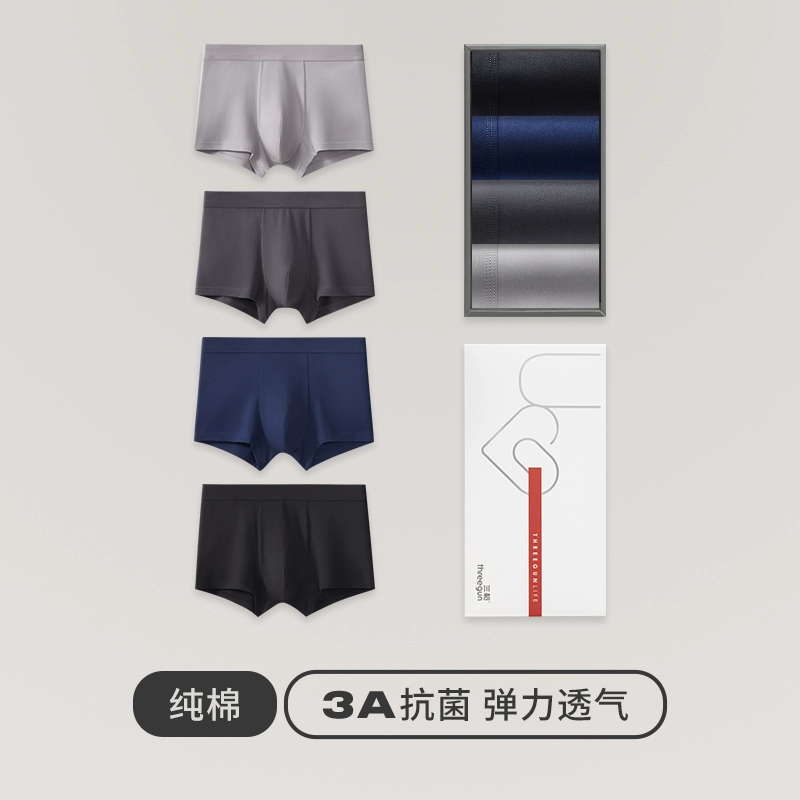 3/4 pack of three-gun men's underwear pure cotton antibacterial youth boxer spring and summer breathable elastic large size students anti-wear