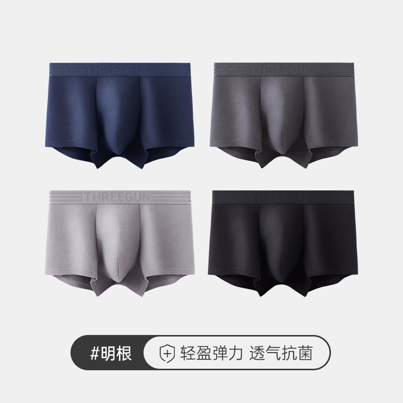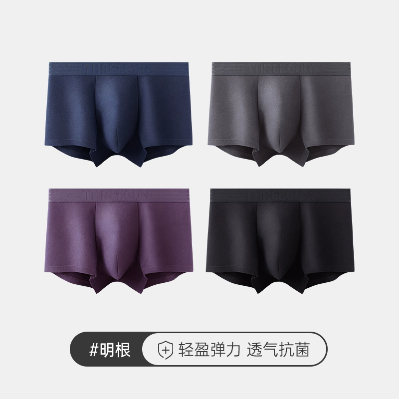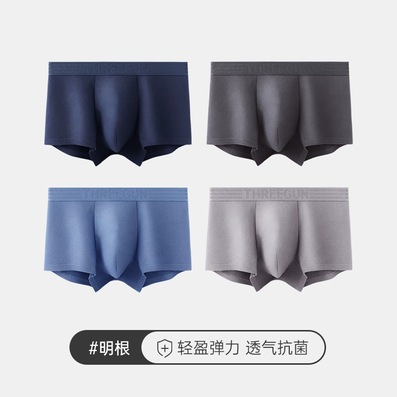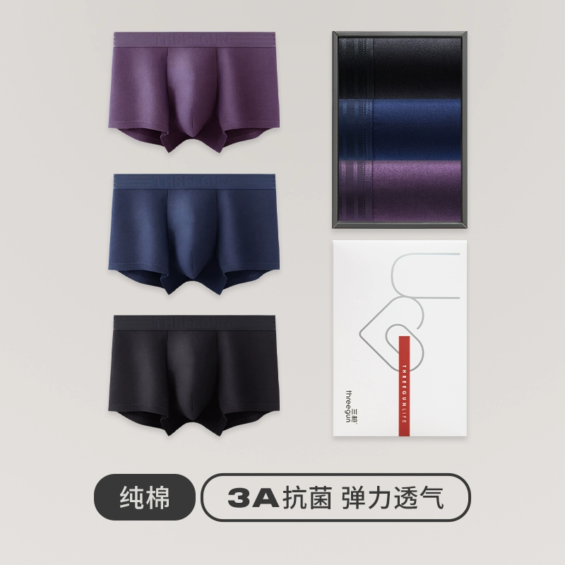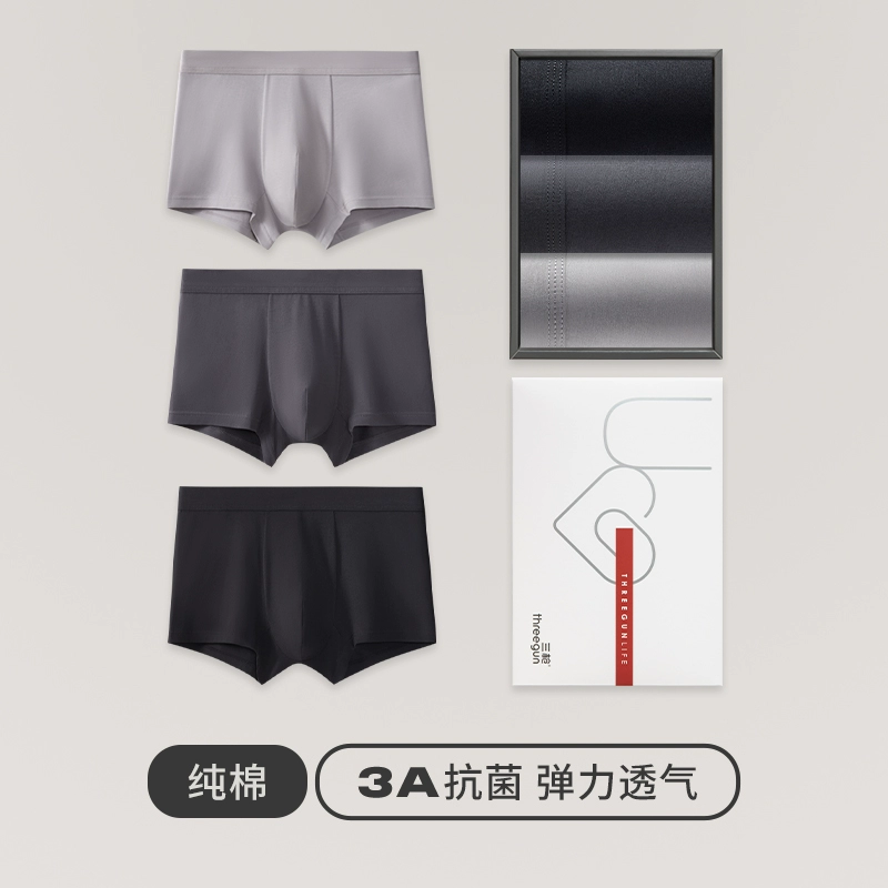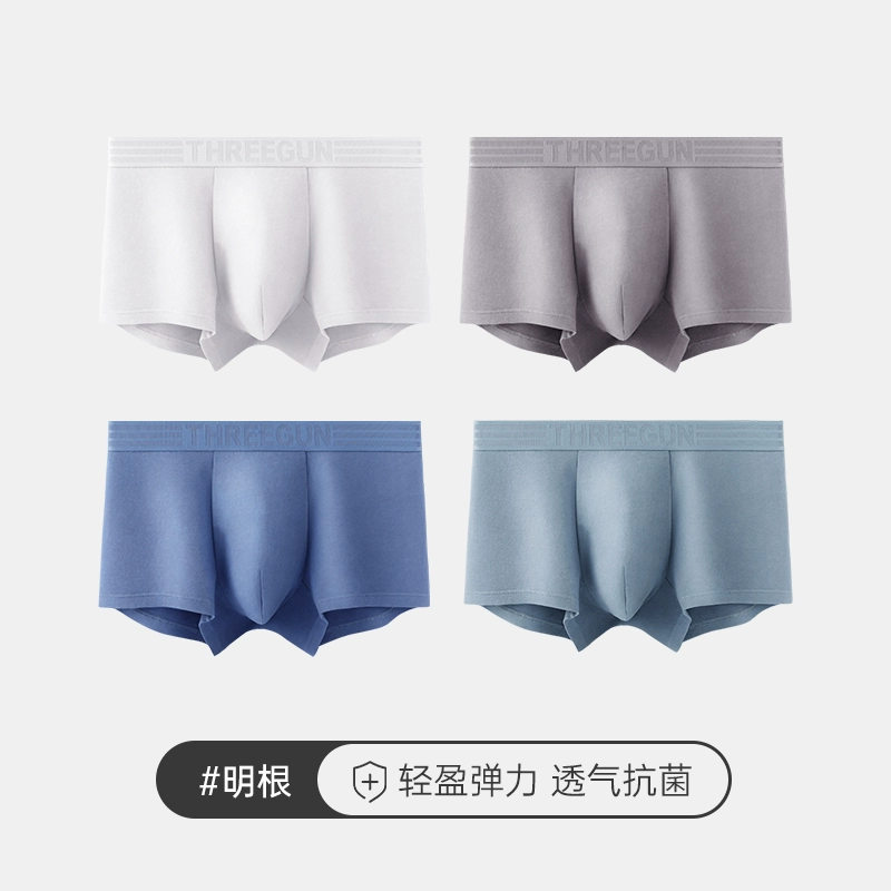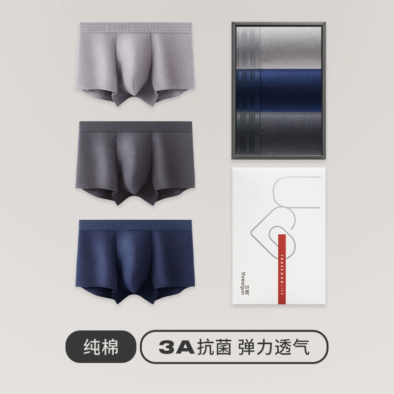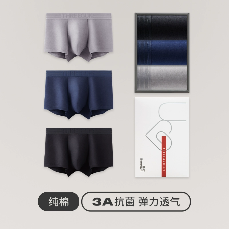 3/4 pack of three-gun men's underwear pure cotton antibacterial youth boxer spring and summer breathable elastic large size students anti-wear