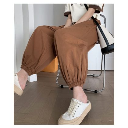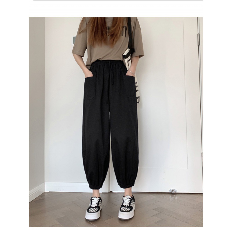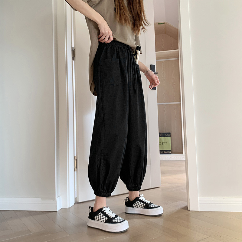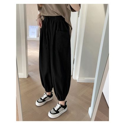 | nameOriginal | 3-color elastic waist lace-up toe overalls 2024 spring and summer loose slimming students all-match casual harem pants for women |