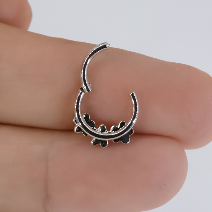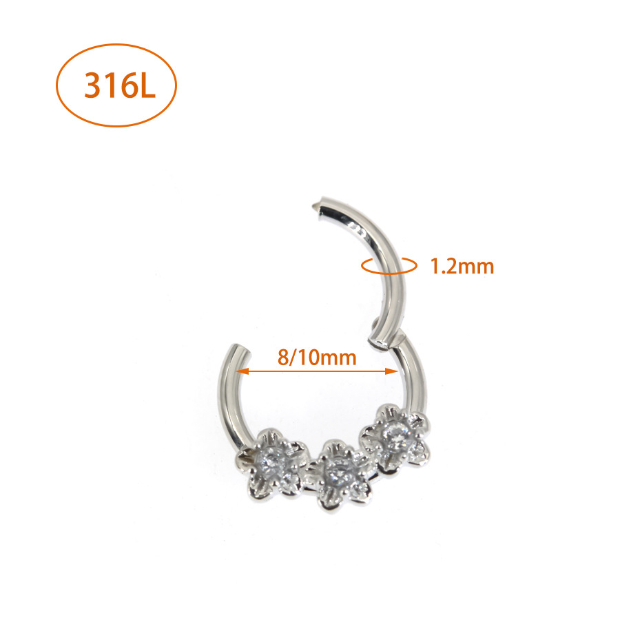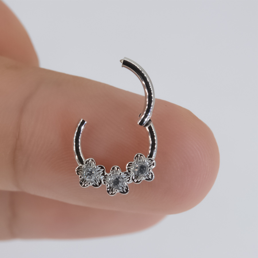 3 flowers Diamond-embedded small fresh flower nose ring ear bone nail 316L anti-allergy cross-border puncture jewelry Shein