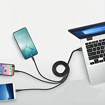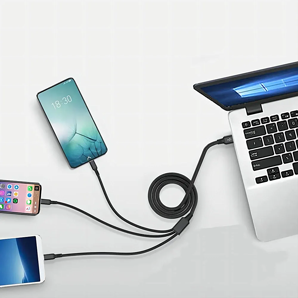 Introducing the Nylon Braided 3 In 1 Fast Charging Cable, the ultimate solution for all your charging needs! This versatile cable is compatible with a wide range of devices including iPhones, Samsung, Huawei, Oppo, and tablets. The cable is made of high-quality nylon braided material that is durable and tangle-free, ensuring a long-lasting and hassle-free charging experience. With its fast charging capabilities, you can quickly charge your devices and get back to your busy day. The 3 in 1 design allows you to charge multiple devices at once, making it perfect for families or individuals with multiple devices. Say goodbye to the frustration of carrying multiple cables and invest in the Nylon Braided 3 In 1 Fast Charging Cable today!
