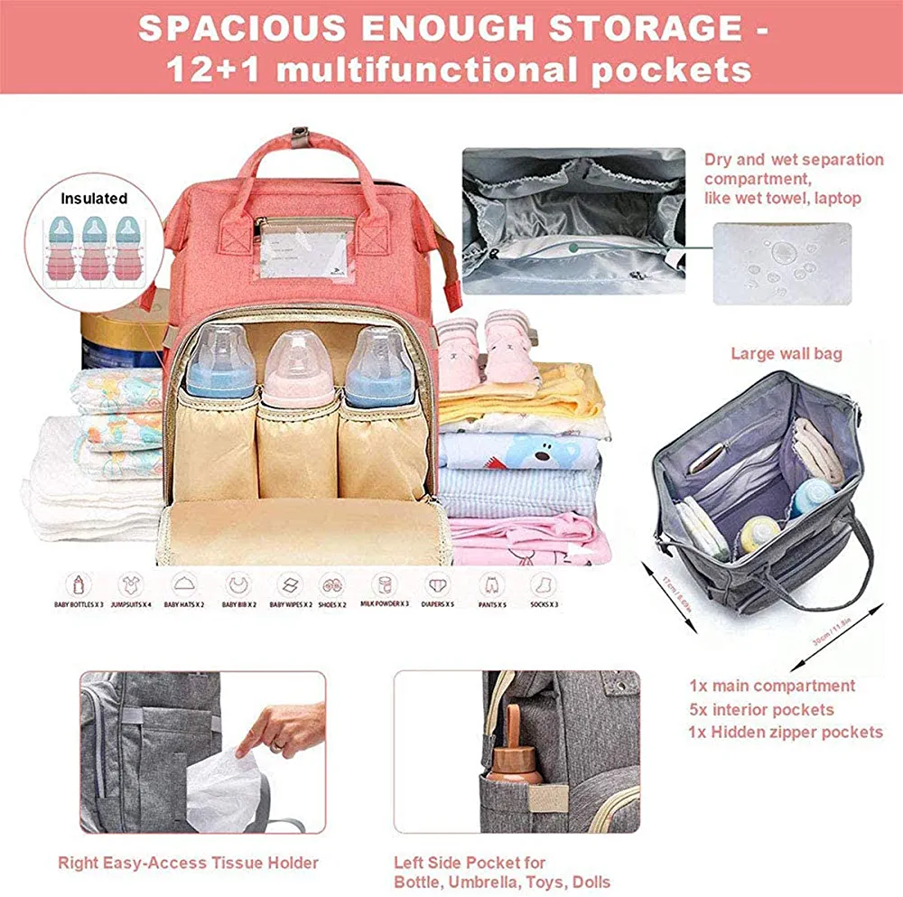 The Travel Foldable Baby Bed 3 In 1 also features a convenient diaper changing station, complete with pockets and compartments to store all your baby essentials. The mummy bag backpack design allows you to carry all your baby’s essentials with ease, leaving your hands free to tend to your little one.