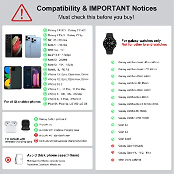 Introducing the Wireless Charging Station for Samsung – the ultimate solution for all your charging needs! This 3 in 1 wireless charger stand dock is designed to be compatible with a wide range of Samsung devices, including the Galaxy Watch 5 Pro/5/4/Active 2, Samsung Galaxy Z Flip 4 Z Fold 4 S21 Ultra S20 S10 Note 20, and Galaxy Buds.