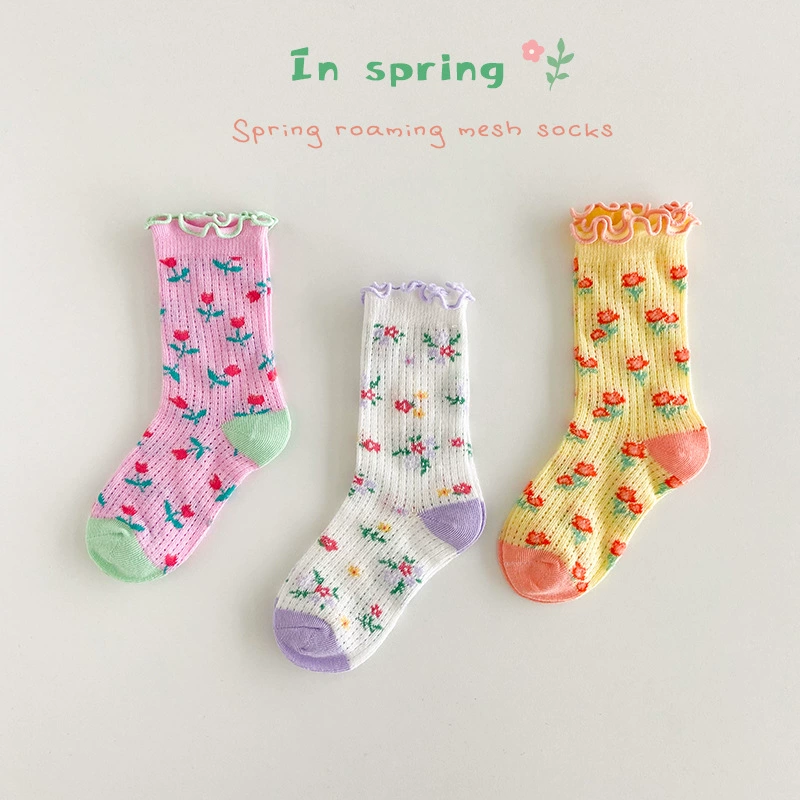 | nameOriginal | 3 pairs of children's socks 2023 spring and summer thin polka dot plaid mid-calf socks cute girls fungus-edged girls' socks |