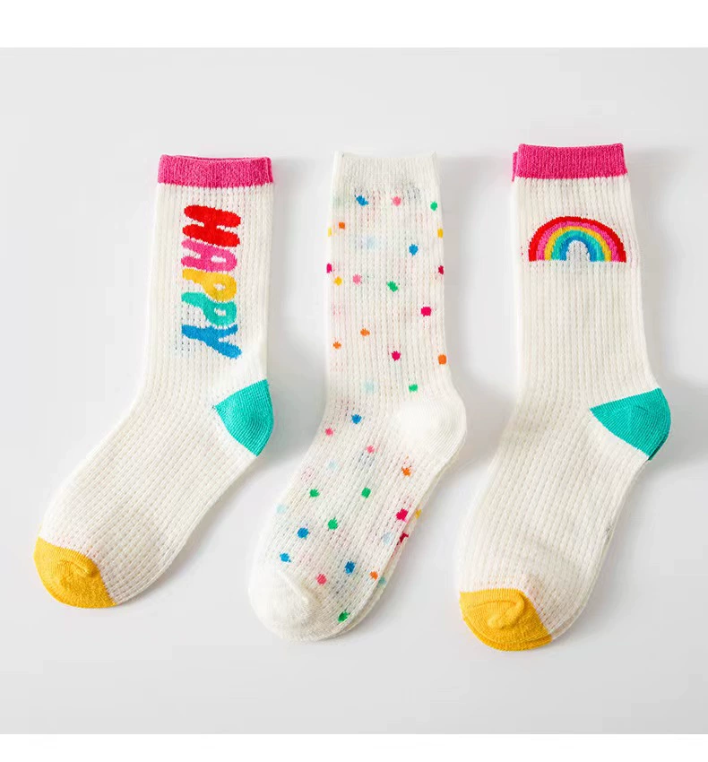 | nameOriginal | 3 pairs of children's socks 2023 spring and summer thin rainbow mesh socks small polka dot amusement park girls mid-calf socks |