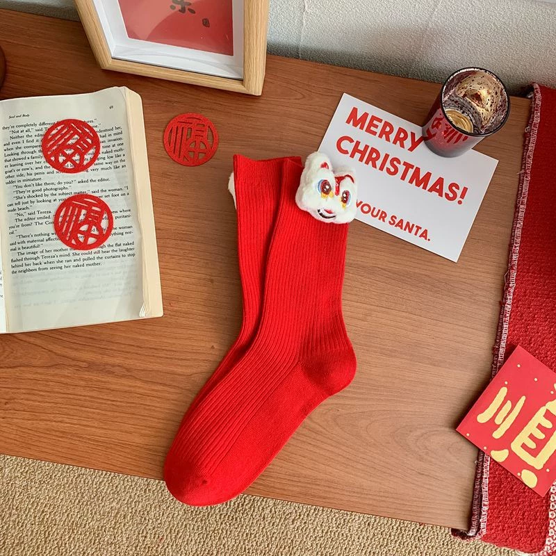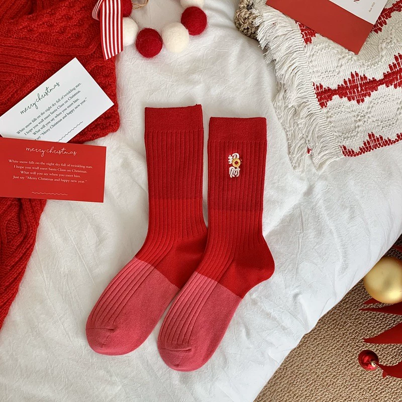 3 pairs of free shipping for new year big red socks for women getting married for zodiac year autumn and winter warm mid-tube socks combed cotton wool stockings