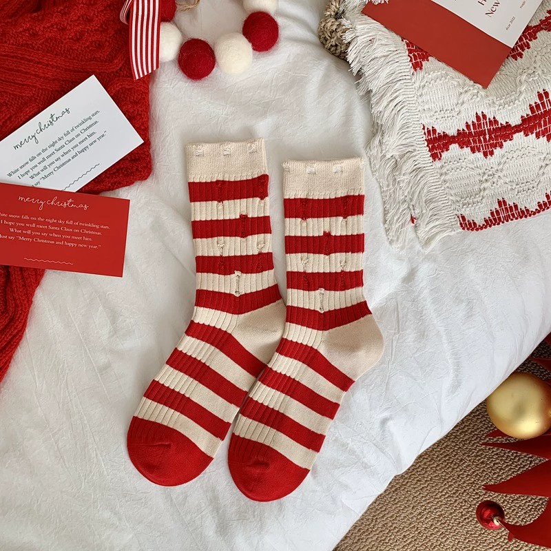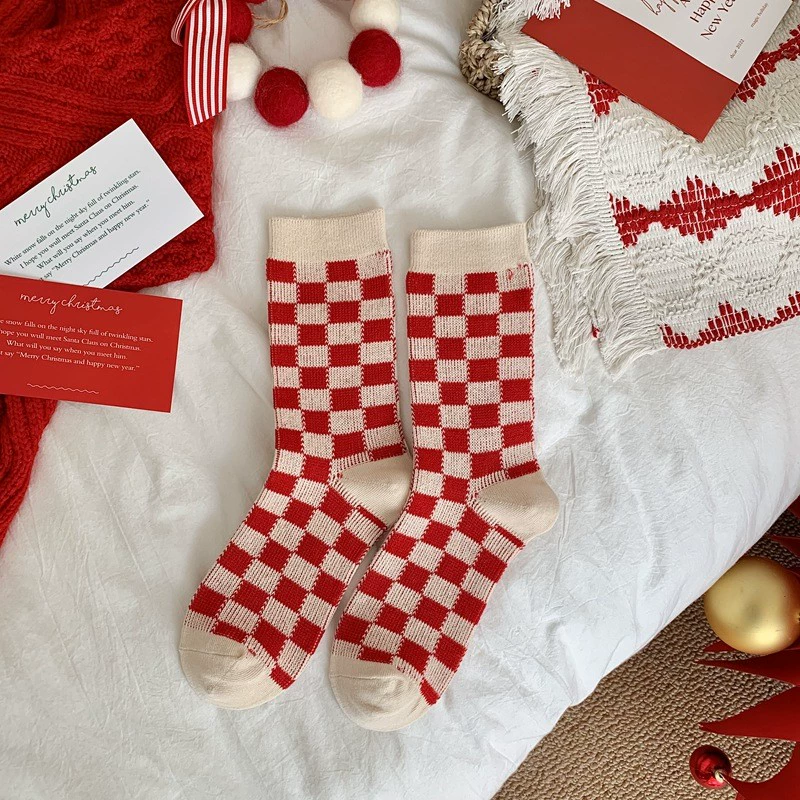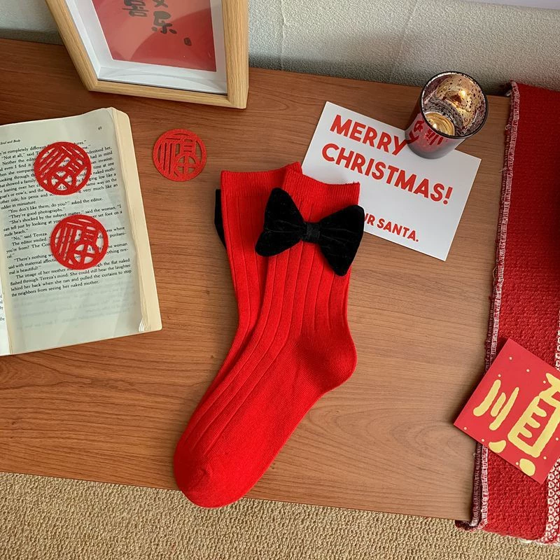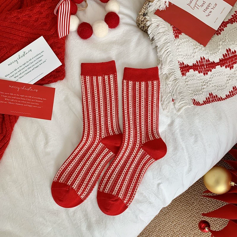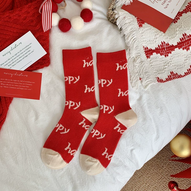 3 pairs of free shipping New Year’s red socks for women’s wedding year, autumn and winter warm mid-calf socks, combed cotton wool stockings