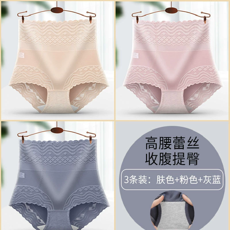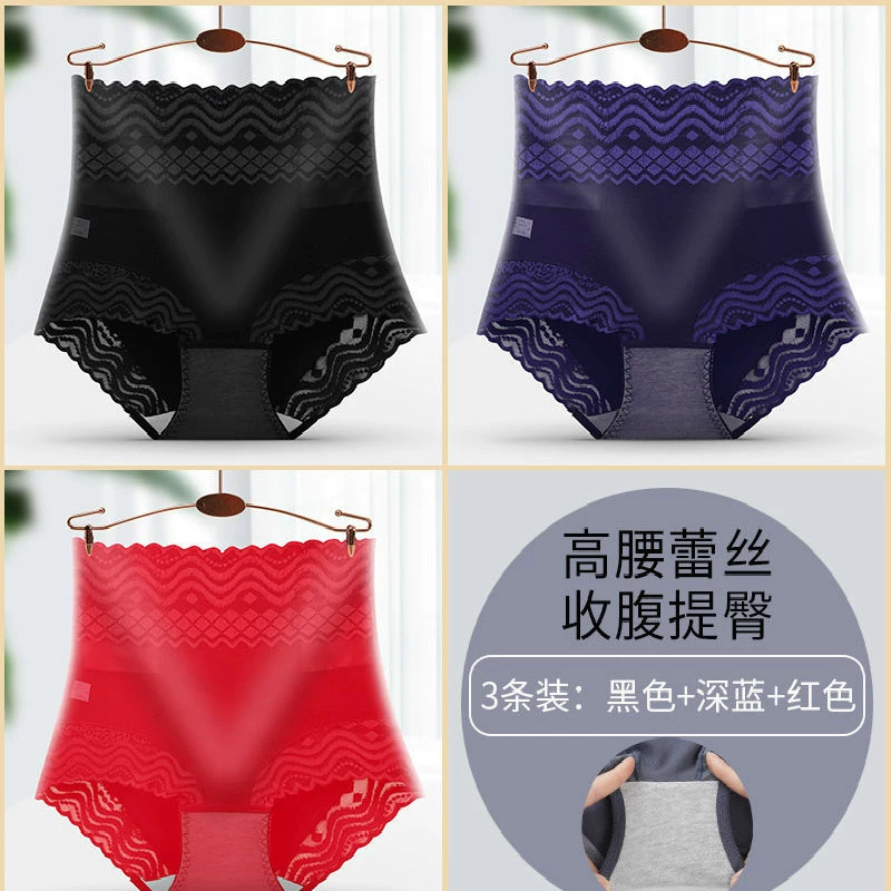 3 high -waisted abdomen, hip -up panties, lady sexy laceless trace waist, transparent mesh, yarn large size pants head