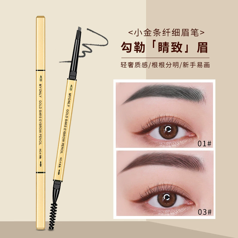3 pieces, Small gold bar eyebrow pencil for women, natural, waterproof, sweat-proof, long-lasting, non-fading, extremely fine head, wild eyebrow pencil, genuine for beginners
