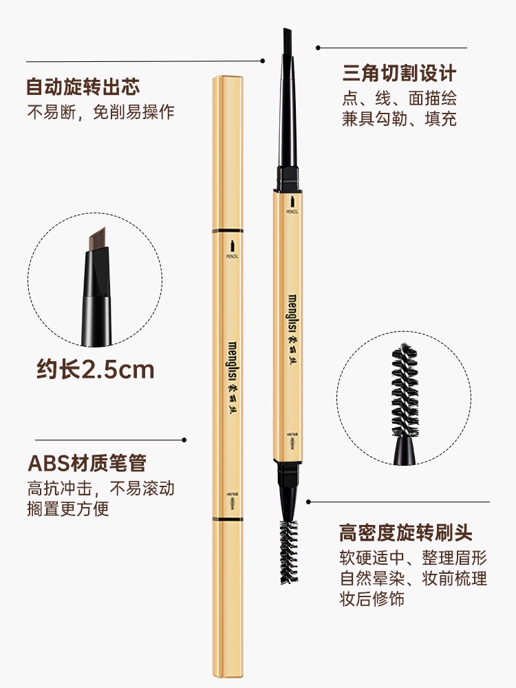 | nameOriginal | 3 pieces, Small gold bar eyebrow pencil for women long-lasting two-in-one waterproof non-fading long-lasting authentic official flagship store wild eyebrow |