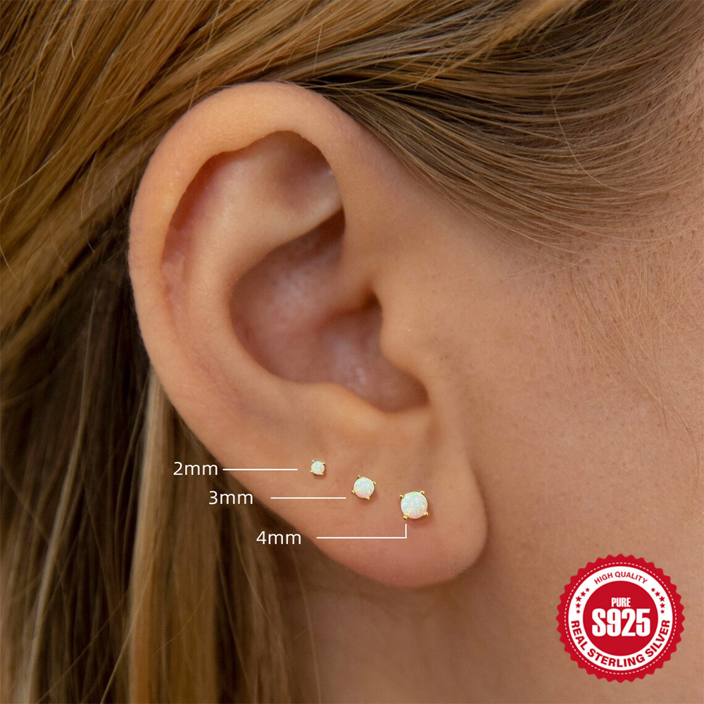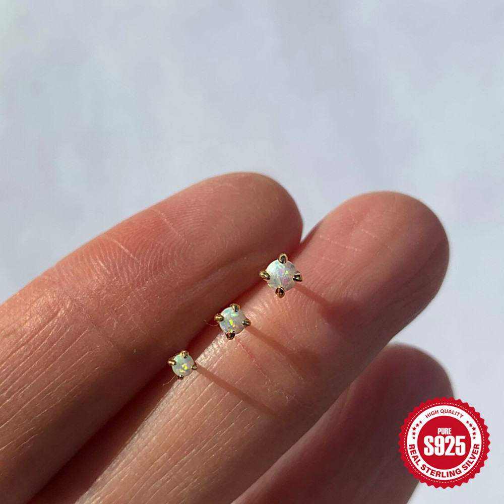 | nameOriginal | 3 sets of simple s925 sterling silver classic four-claw diamond Opal Opal women's earrings |