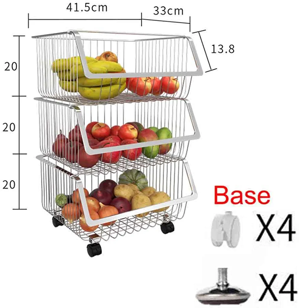 Introducing the BEONE Fruit Vegetable Storage Basket Rack Unit, the perfect solution for all your storage needs! This 3-tier stackable wire storage bin cart is designed to keep your fruits, vegetables, and other kitchen essentials organized and easily accessible. With its sleek and modern design, this storage rack unit is not only functional but also adds a touch of elegance to your kitchen, pantry, bathroom, or garage.