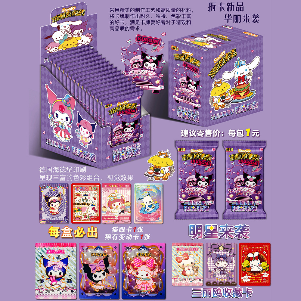 | nameOriginal | 30 in and out card Sanrio card collection card kulomika bag melody square card blind box children's toys around |