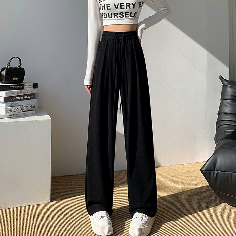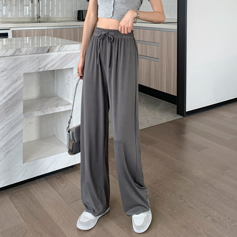 300 catties of large size fat MM ice silk wide -leg pants female summer thin high waist high -waisted straight tube vertical leisure sunscreen trousers
