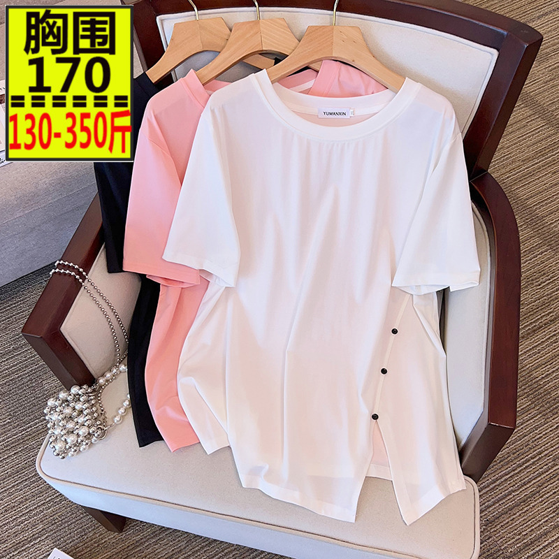 | nameOriginal | 300 pounds extra large size women's summer style slimming irregular top 200 fat mm solid color short-sleeved T-shirt for women 260 |
