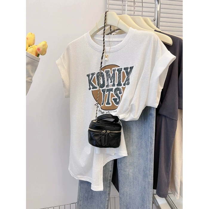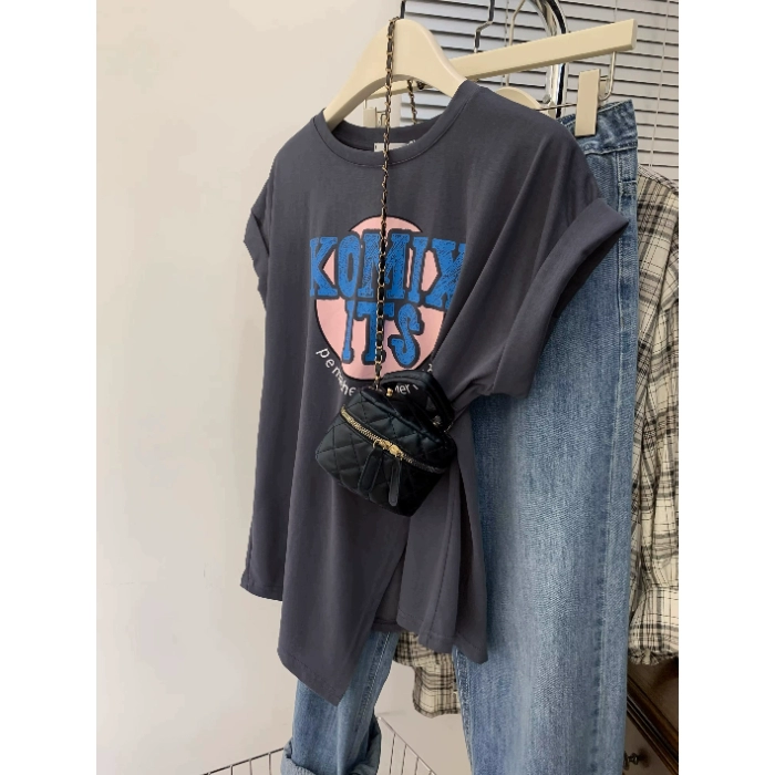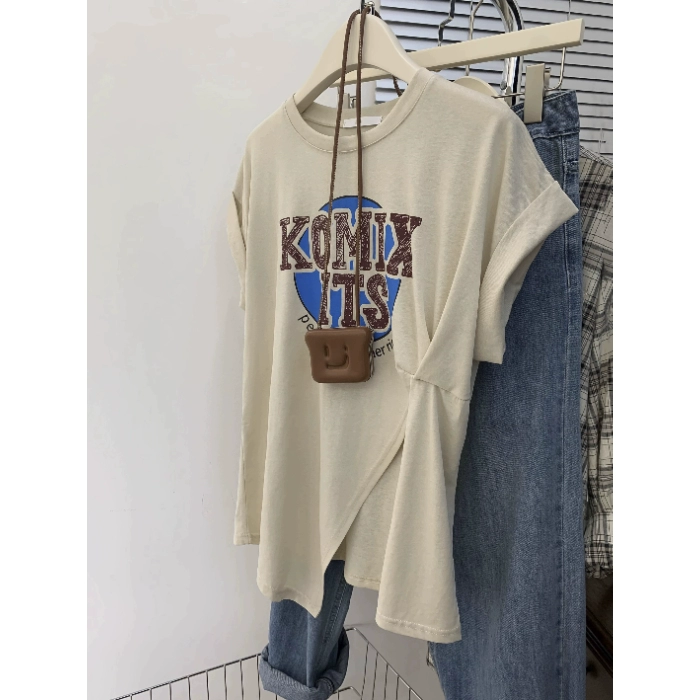 300 pounds plus size fat girl loose slit short-sleeved T-shirt
