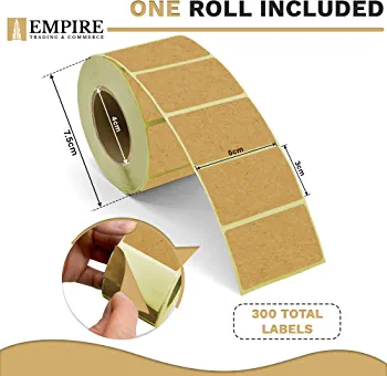 | nameOriginal | Empire 300 Sticker Labels, 5cmx3cm Label Stickers, 80GSM Brown Kraft Paper Sticky Labels, Self-Adhesive Address Mailing Labels for Offices and Supermarkets, Labels for Kitchen Jars |