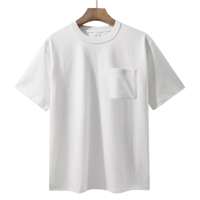 | nameOriginal | 300g heavyweight thickened pure cotton short-sleeved T-shirt men's American high street small collar white pocket half-sleeved high weight |