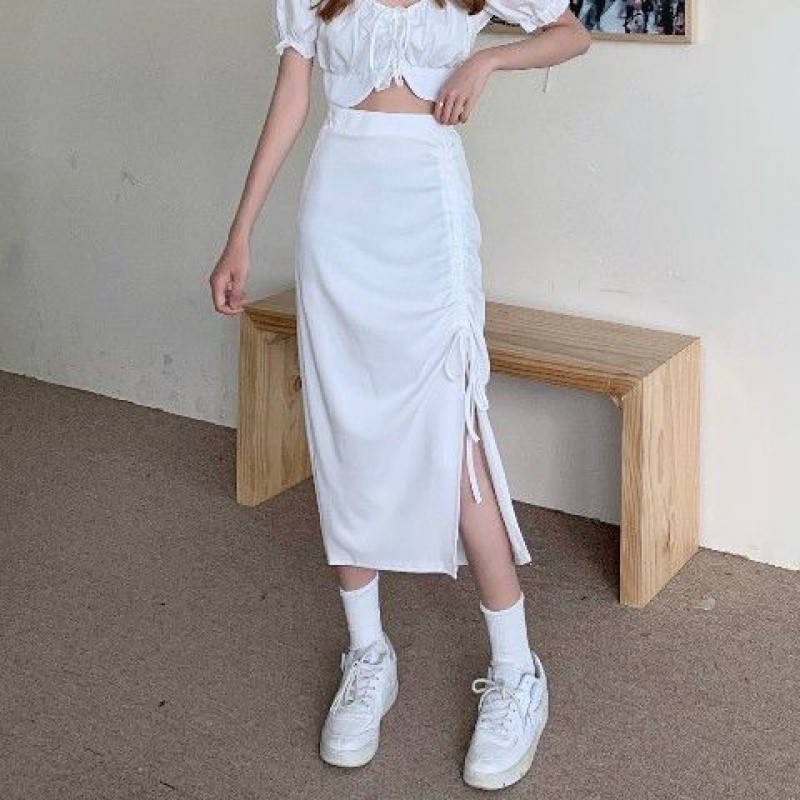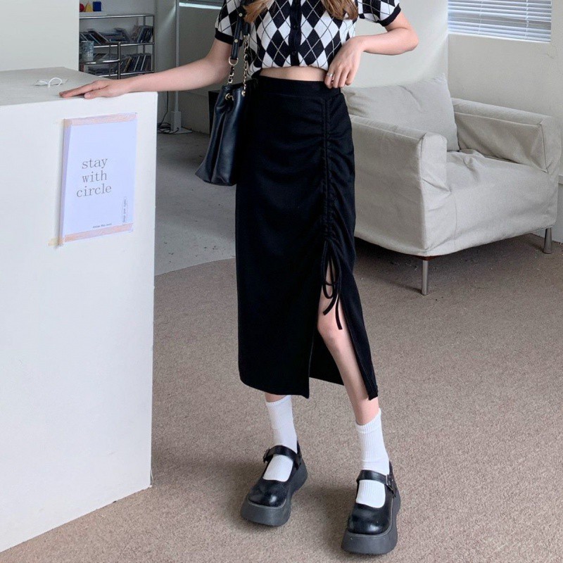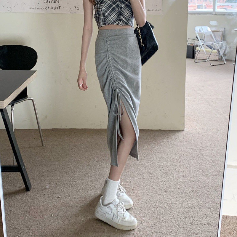 | nameOriginal | 300kg plus size Women's Clothing Niche Hip Skirt Women's chubby girl Design Solid Color Drawstring Pleated Split Skirt |
