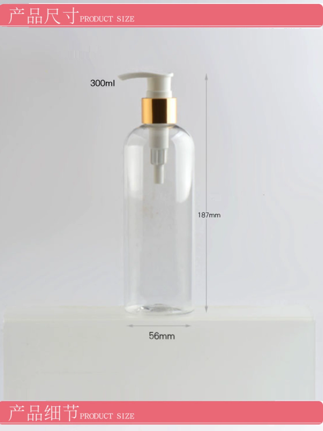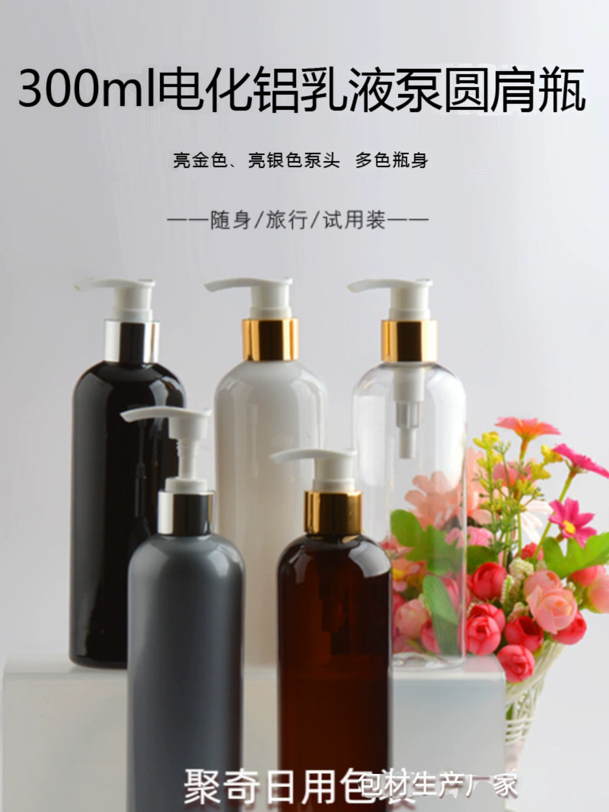 | nameOriginal | 300ml round shoulder press pump shampoo bottle anodized aluminum pump lotion bottle rotary pump plastic packaging material |