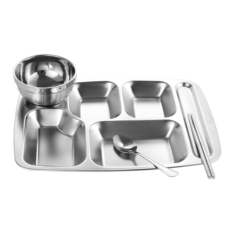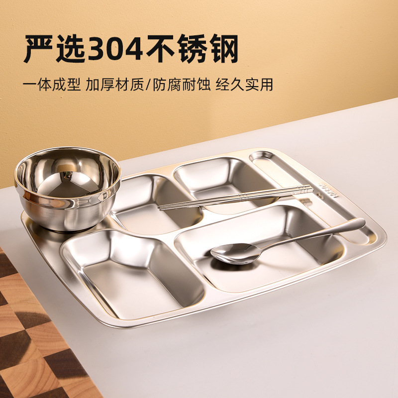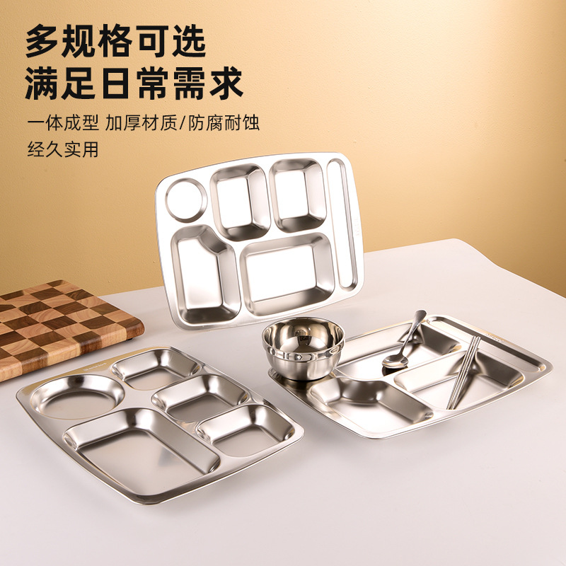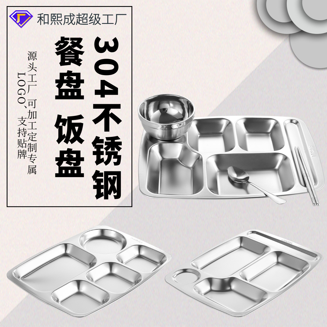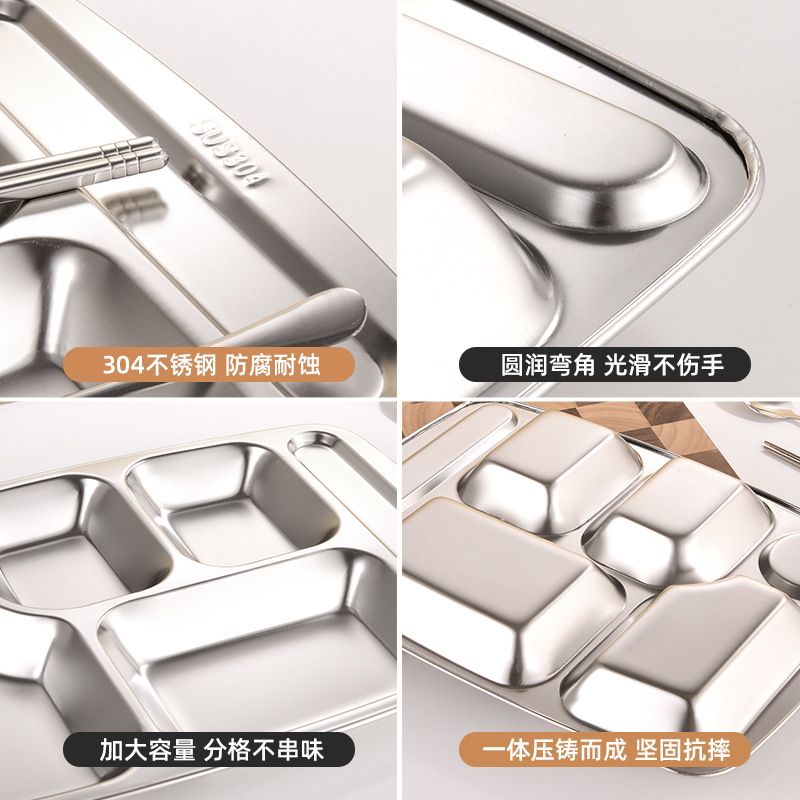 304 Stainless Steel Dinner Plate Tableware School Canteen Restaurant Large Dinner Plate Crate Thickened Lunch Box Student Dinner Plate