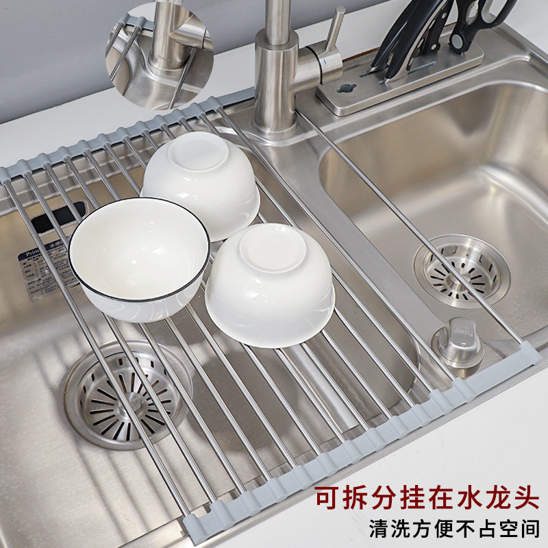 304 Stainless Steel Foldable Drain Rack Household Sink Drip Rack Sink Sink Fruit and Vegetable Dishes Chopsticks Water Filter Rack