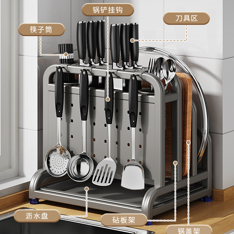 | nameOriginal | 304 stainless steel kitchen knife rack storage rack Anvil cutting board knife multi-functional chopsticks cage integrated storage and storage |