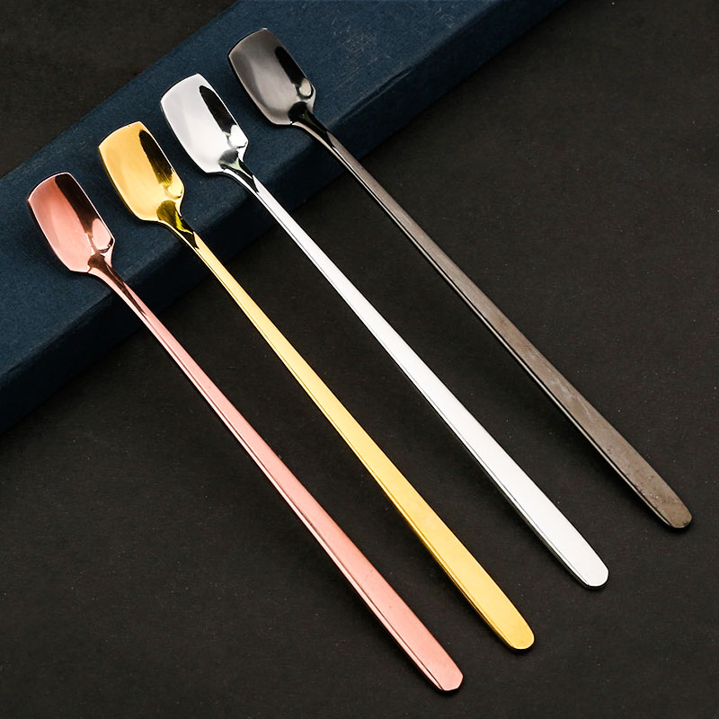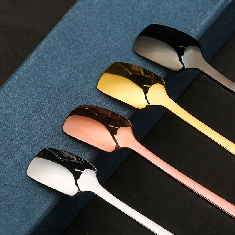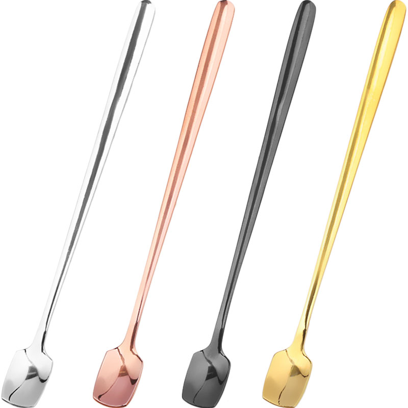 304 stainless steel mixing spoon mug teaspoon coffee spoon ins style long handle square head cold drink ice spoon milk spoon