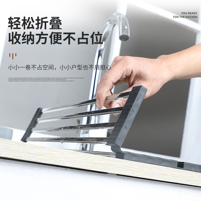 304 Stainless Steel Sink Drain Rack Folding Square Tube Drain Dish Rack for Bowl and Chopsticks Dish Rack Sink Roller Curtain Rack
