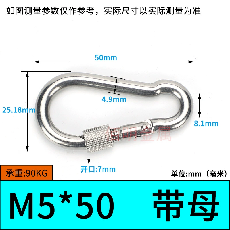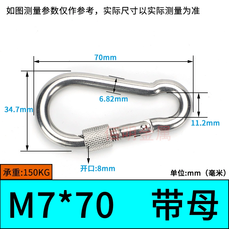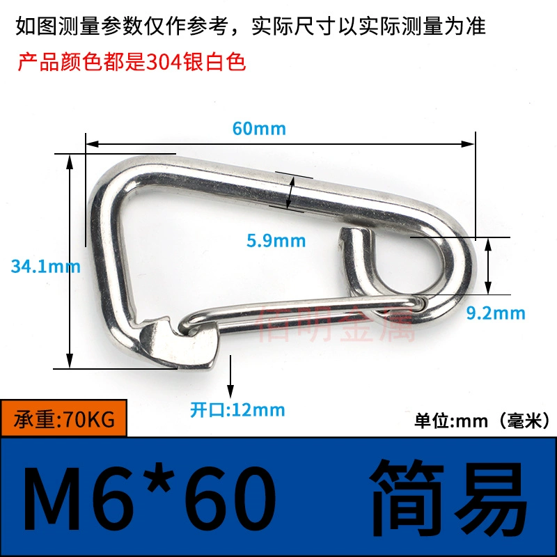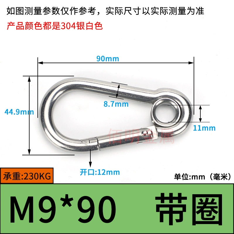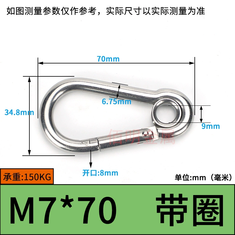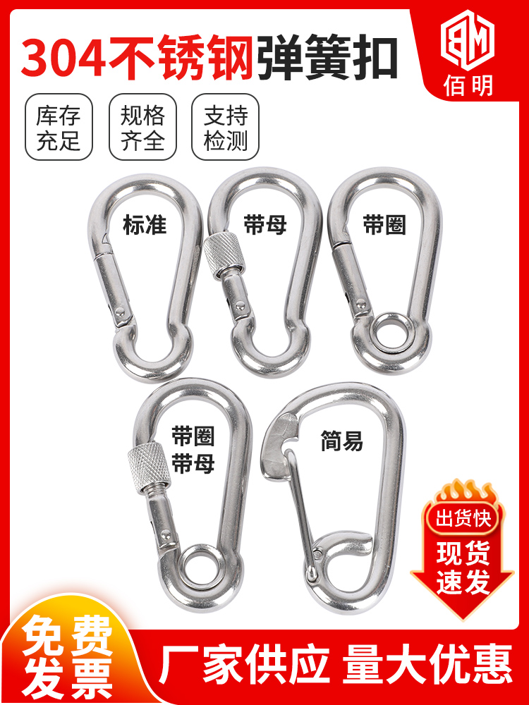 | nameOriginal | 304 stainless steel spring buckle carabiner safety buckle key chain hoist buckle nut spring belt ring buckle dog chain buckle |