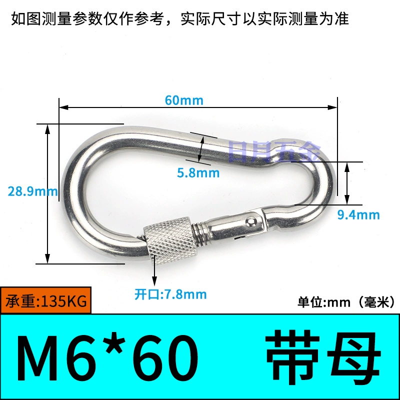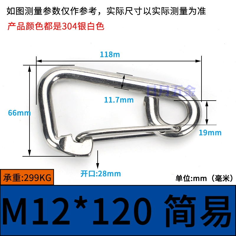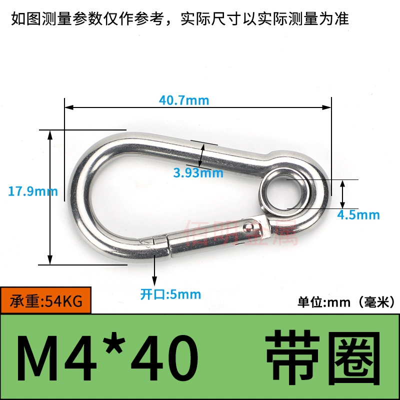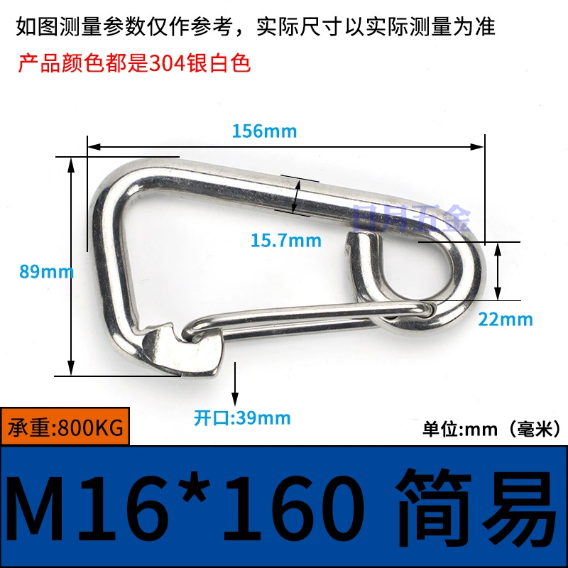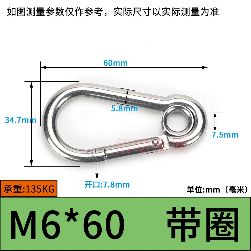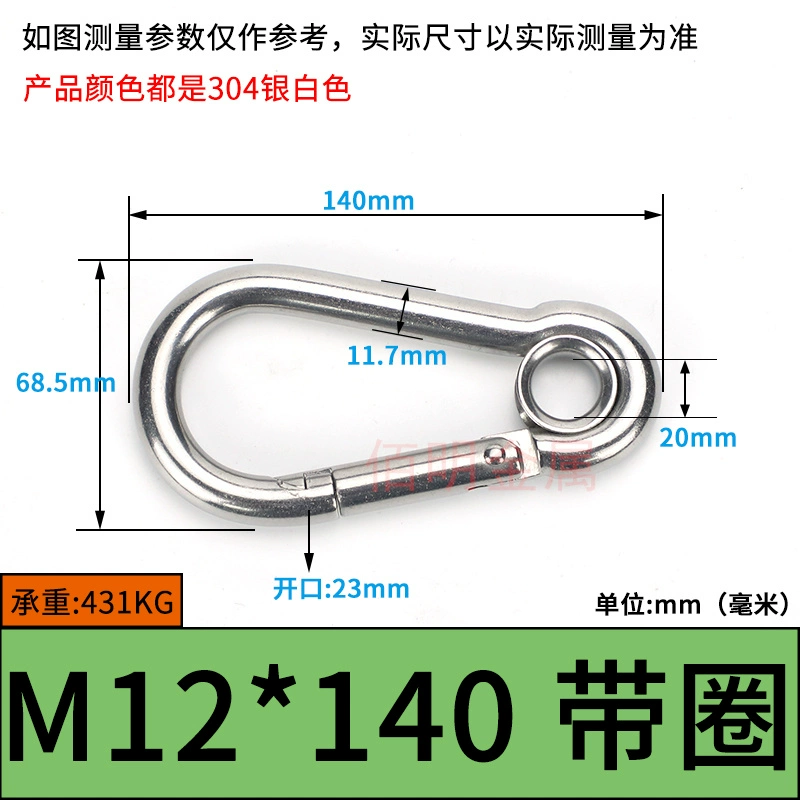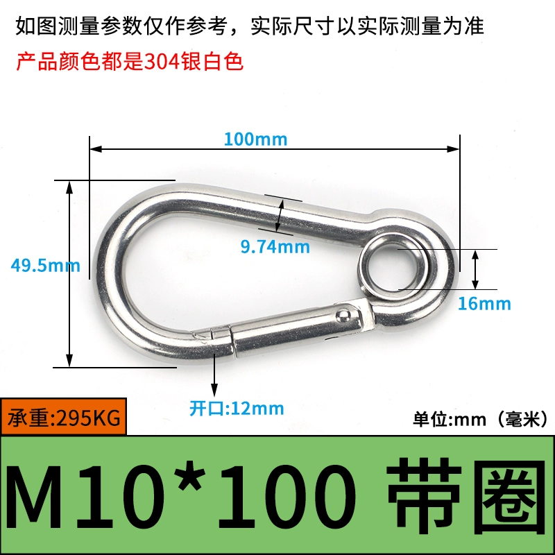 | nameOriginal | 304 stainless steel spring buckle carabiner safety buckle key chain hoist buckle nut spring belt ring buckle dog chain buckle |
