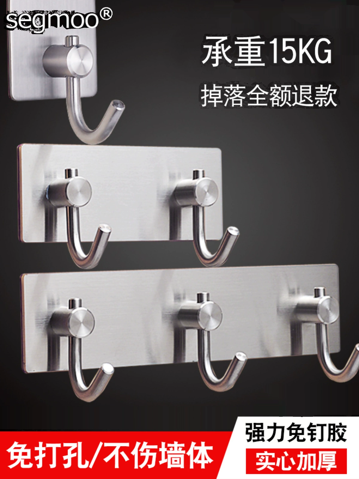 | nameOriginal | 304 stainless steel sticky hook kitchen metal hook behind the door bathroom load-bearing clothes hook multi-functional single hook 6 hooks in a row |
