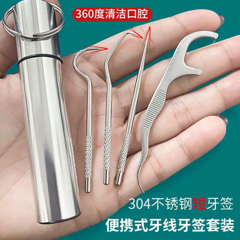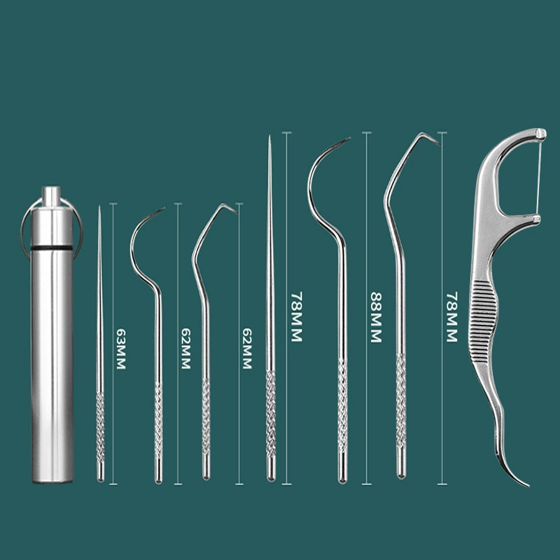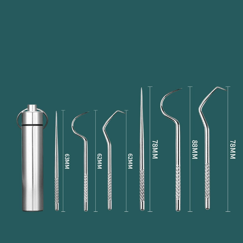 | nameOriginal | 304 stainless steel toothpick 7-piece set portable metal curved needle crochet toothpick floss stick tooth picking tool |