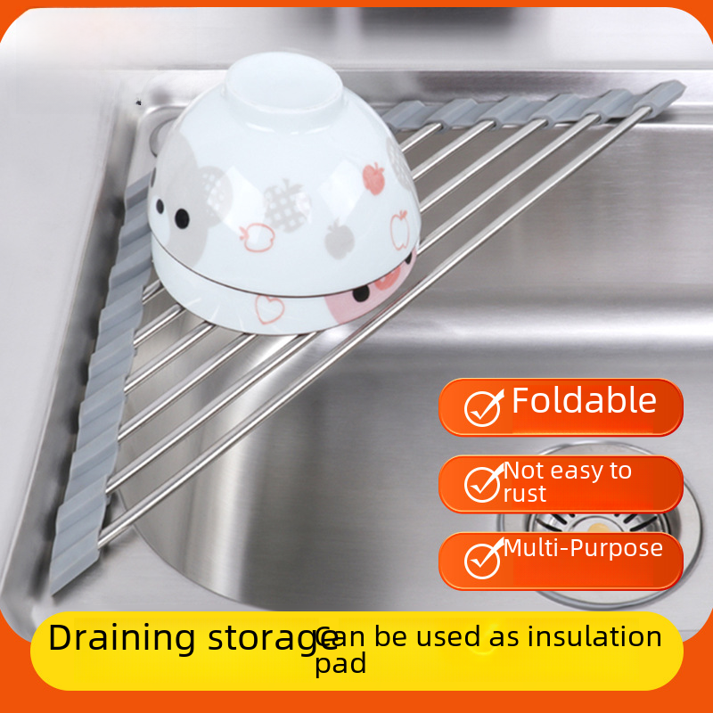 | nameOriginal | 304 Stainless Steel Triangle Drain Rack Foldable Roller Curtain Type Fruit and Vegetable Drain Rack Household Dish Drip Rack |