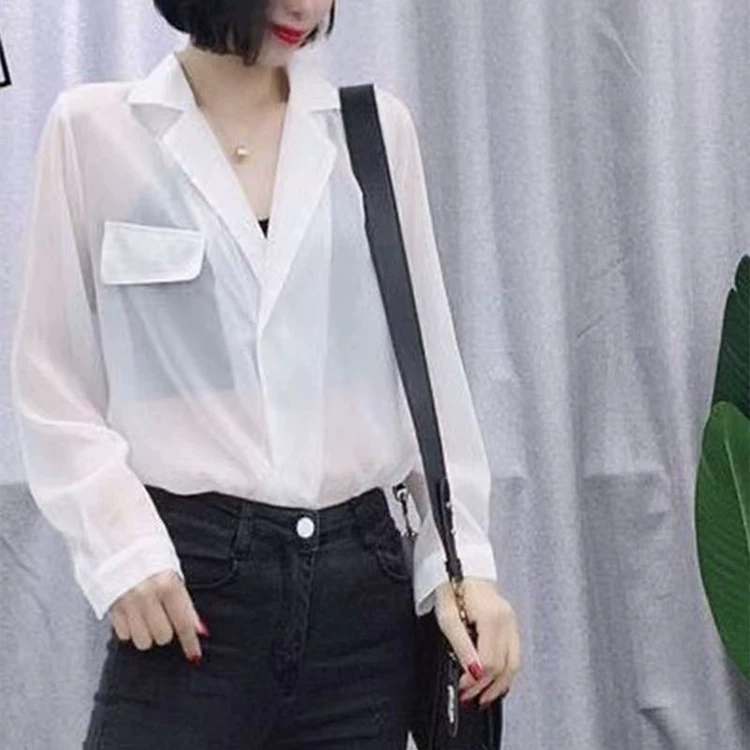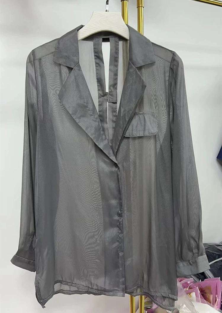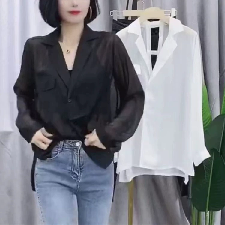 3050 Fashion Micro Reveal Back Suit Collar Shirt Summer New Loose Versatile Temperament Slim Sun Protection Shirt