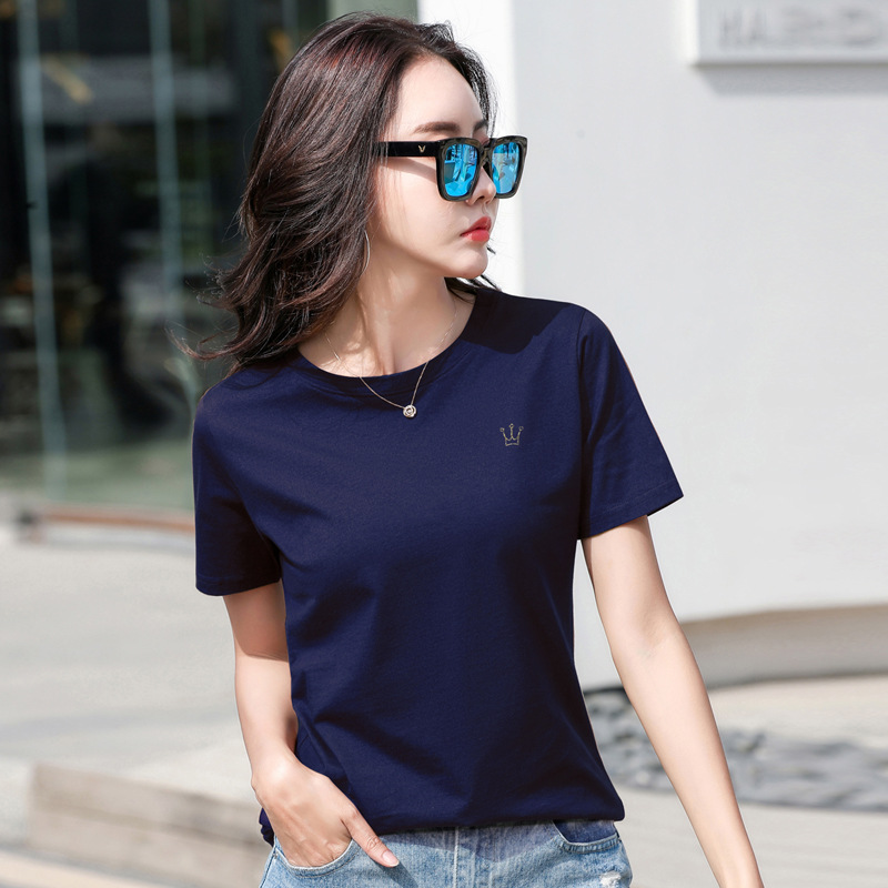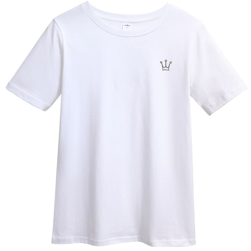 308 Summer New Short-sleeved Round Neck Cotton Shoulder White T-shirt Women's Loose Korean-style Half-sleeved Top Trendy ins