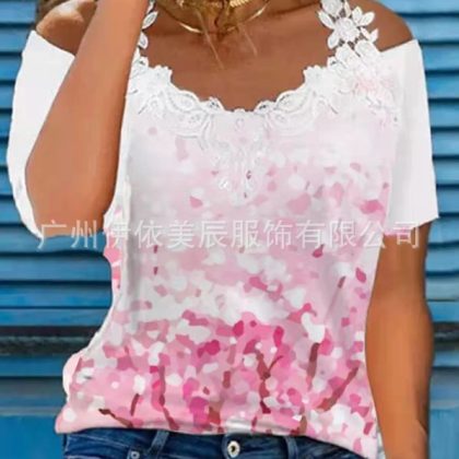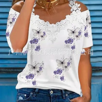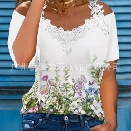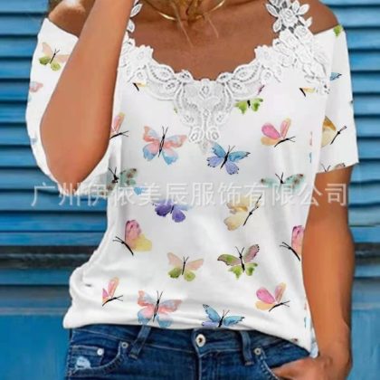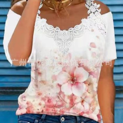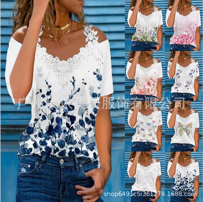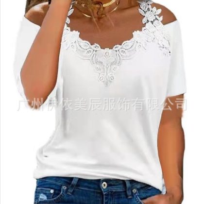 | nameOriginal | 312#2022 Amazon Europe and the United States cross-border women's summer new V-neck lace shoulder leakage short sleeve casual T-shirt |