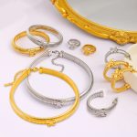 nameOriginal | 316 Ear Needle Stainless Steel European and American Atmospheric Thread Bracelet Necklace Earrings Ring suit Trendy Cross-border Accessories for Women |