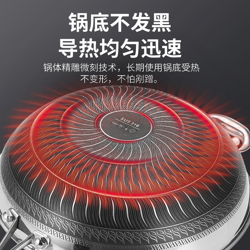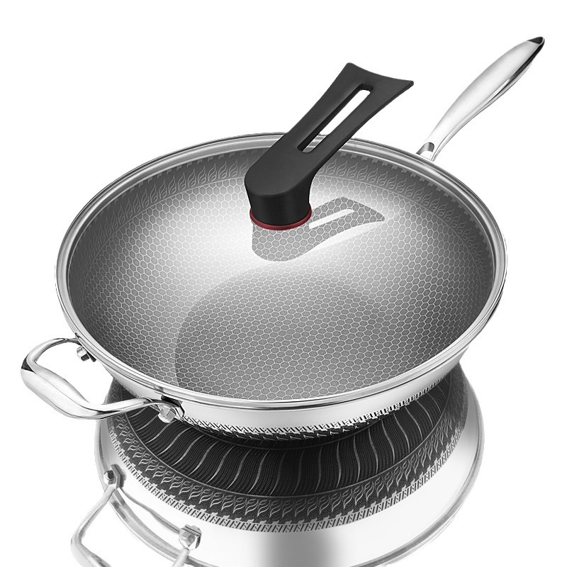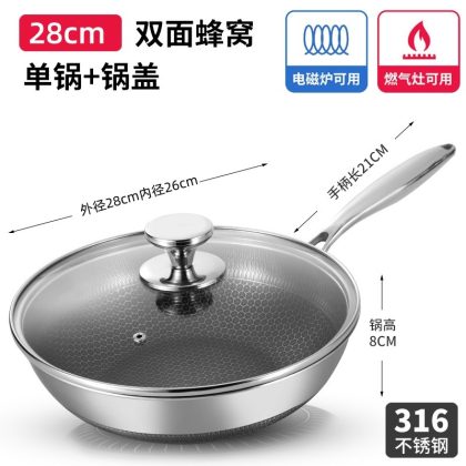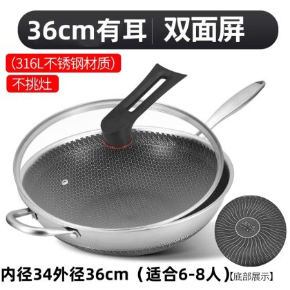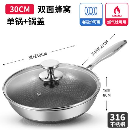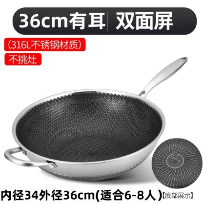 | nameOriginal | 316L Stainless Steel Double-sided Wok with Less Oil Fume Honeycomb Flat Bottom Non-stick Wok Household Gas Induction Cooker Cookware |