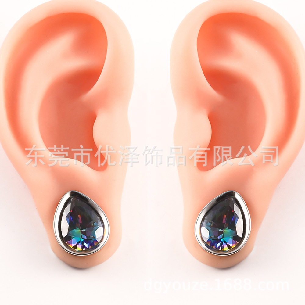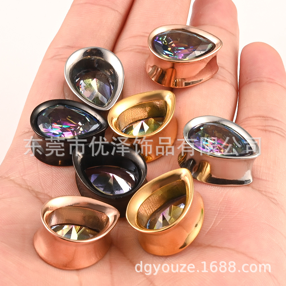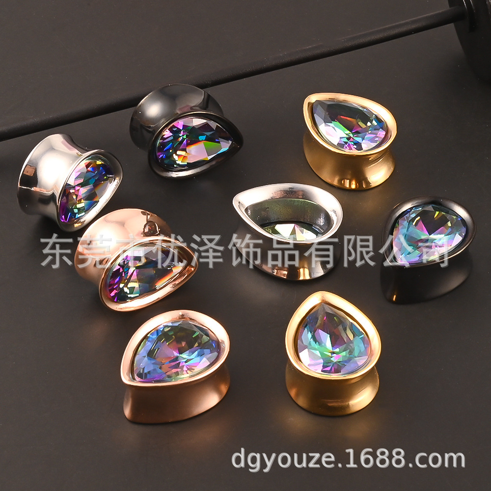 | nameOriginal | 316L stainless steel water drop ear expander casting ear expander ear stick color Crystal zirconium vacuum electroplating piercing jewelry |