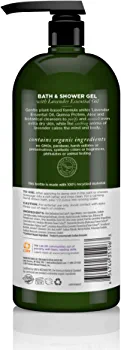 Revitalize and moisturize your extra dry skin with Avalon Organics Nourishing Lavender Bath & Shower Gel. This plant-based formula, enriched with organic botanicals and essential oils, gently cleanses and hydrates your skin while eliminating impurities. The combination of lavender essential oil, quinoa protein, and aloe deeply nourishes and replenishes your skin, leaving it feeling soft and supple. This body wash is EWG VERIFIED, made with non-GMO ingredients, and free from parabens, synthetic colors or fragrances, harsh preservatives, phthalates, and sulfates. It is also vegan and cruelty-free. You will receive one 32 oz. bottle of Avalon Organics Nourishing Lavender Bath & Shower Gel. Avalon Organics NSF organic certified skin care, hair care, and bath & body products are created with a deep respect for nature. By combining modern science with botanicals, they strive to perfect each formula, evolve their expertise, and deliver innovation. Their thoughtfully developed formulas not only nourish the body but also nourish the mind and soul by seeking out the beautifying benefits hidden within each plant.