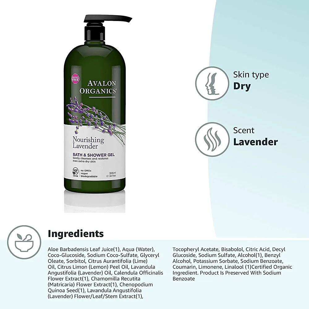 | nameOriginal | Avalon Organics Bath & Shower Gel, Nourishing Lavender, 32 Oz |