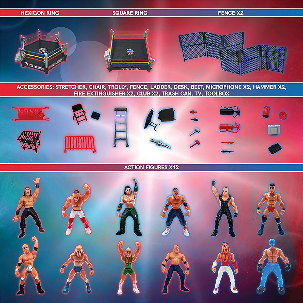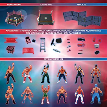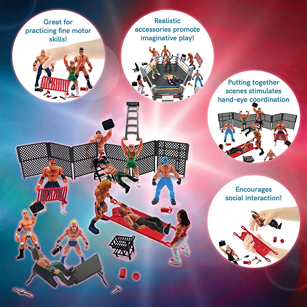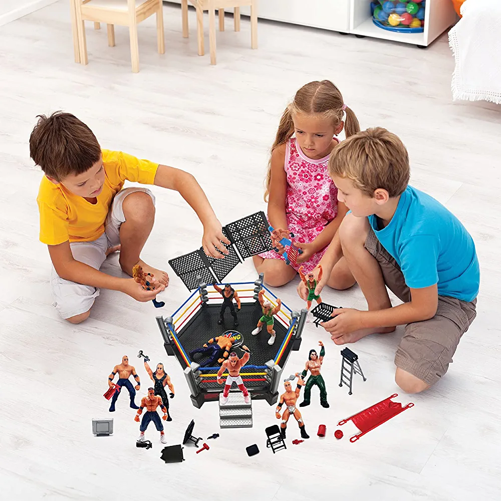 | nameOriginal | ToyVelt 32-Piece Wrestling Toys for Kids – Wrestler Warriors Toys with Ring & Realistic Accessories – Fun Miniature Fighting Action Figures Includes 2 Rings – Great Gift for Boys and Girls  |