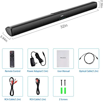 | nameOriginal | Saiyin Sound Bars for TV, Wired and Wireless Bluetooth 5.0 TV Stereo Speakers Soundbar 32’’ Home Theater Surround Sound System Optical/Coaxial/RCA Connection, Wall Mountable |