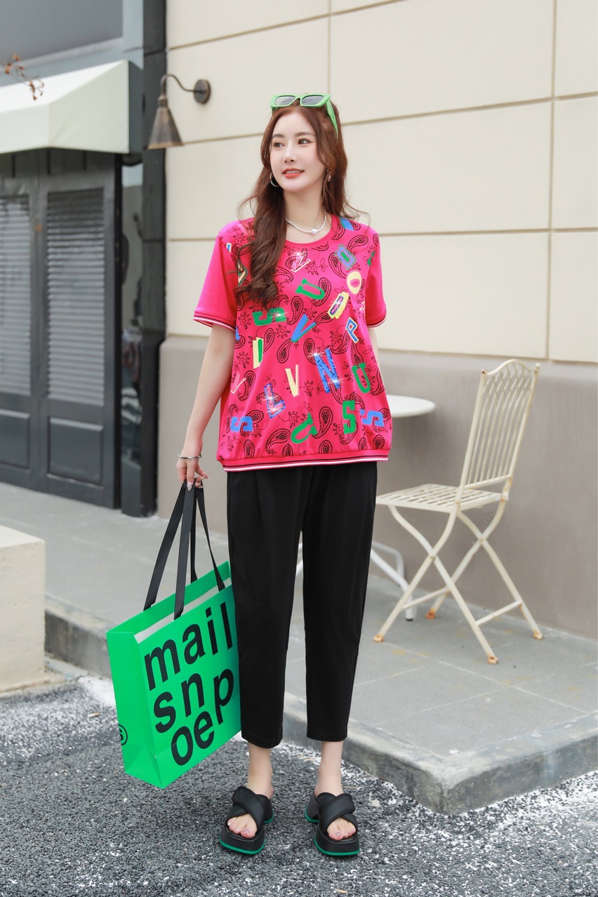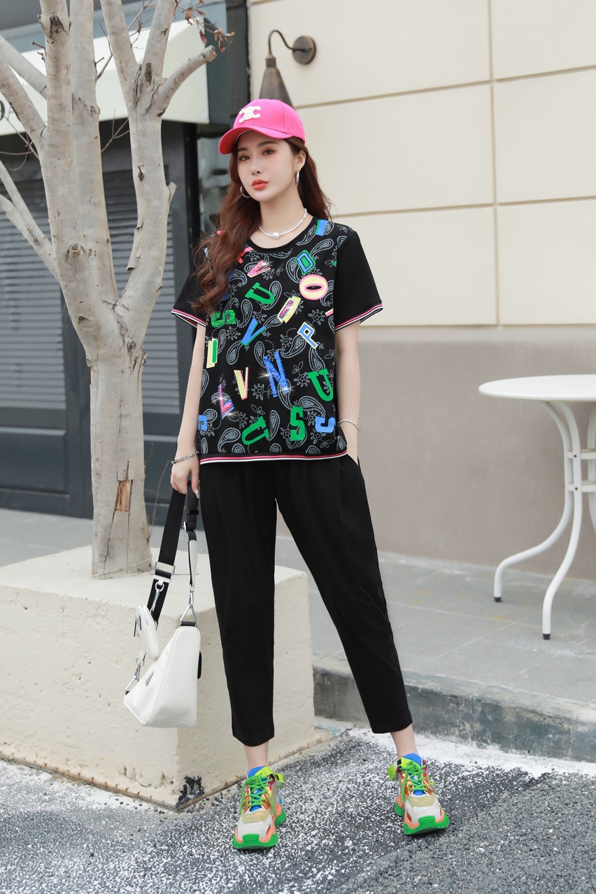 | nameOriginal | 3283 Large Size Women's Suit Letter Printing Bead Embroidery Quality Cotton Fat Girl's Clothes Korean Loose Two-Piece Suit |