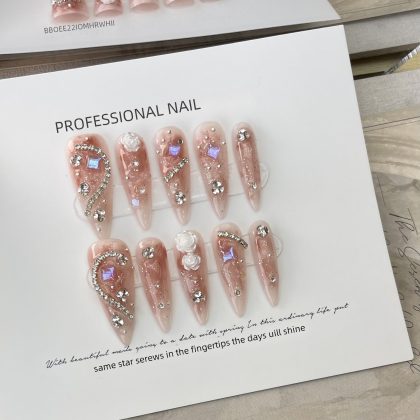 333 pure manual light therapy wearing armour almond armour full diamond camellia wearing armour finished product repeated use nail art
