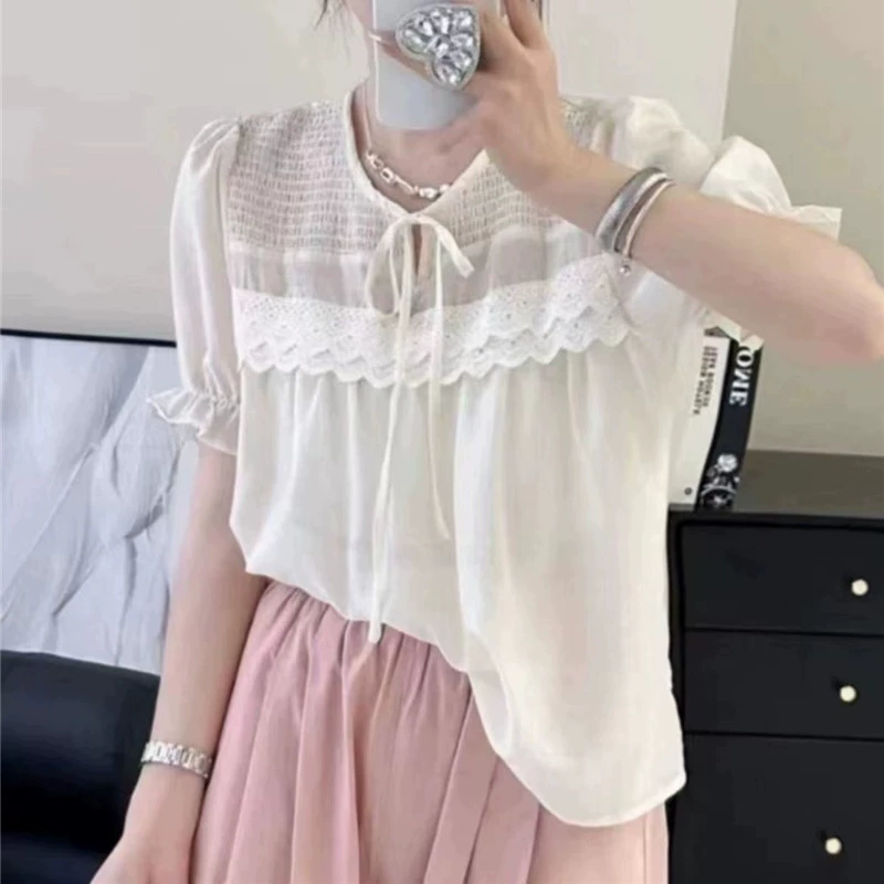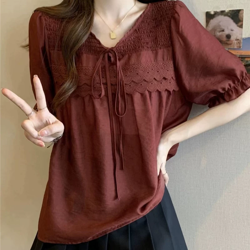 | nameOriginal | 3470 hook lace pullover short-sleeved shirt summer new women's Korean style fashionable age-reducing solid color top |