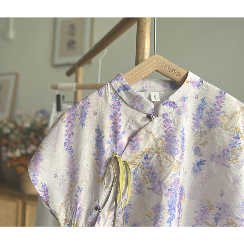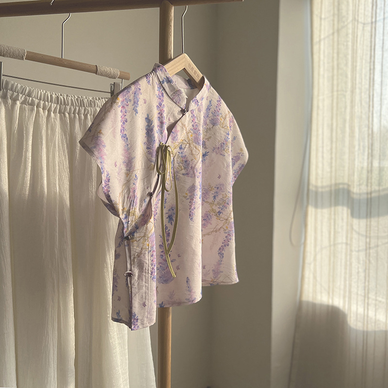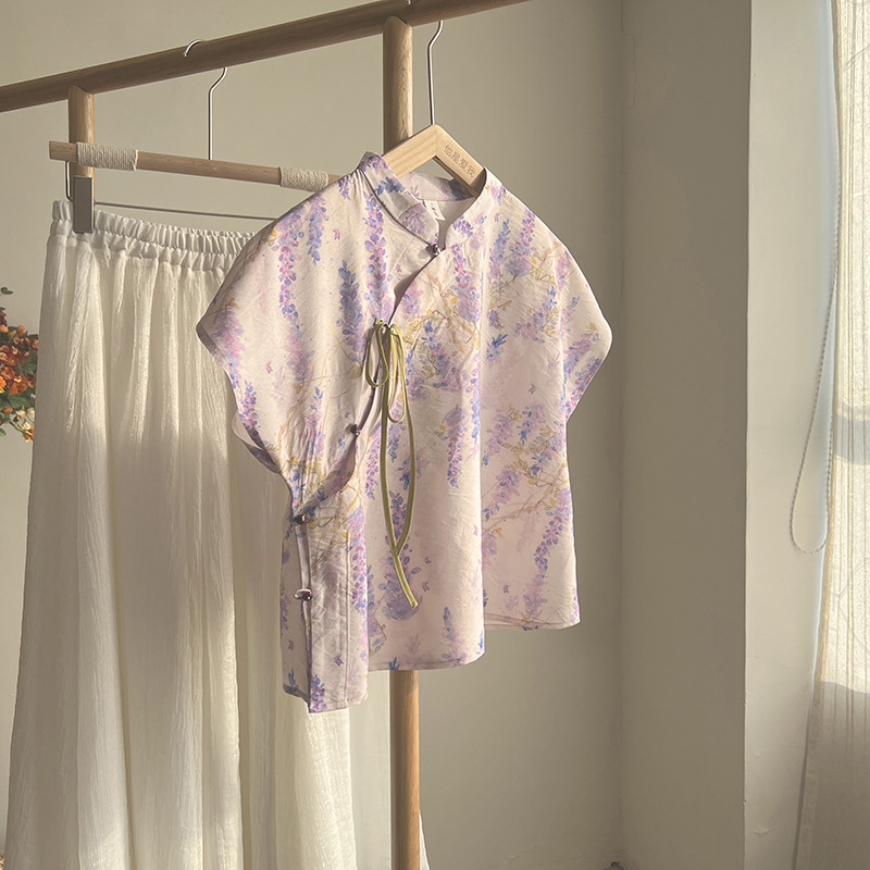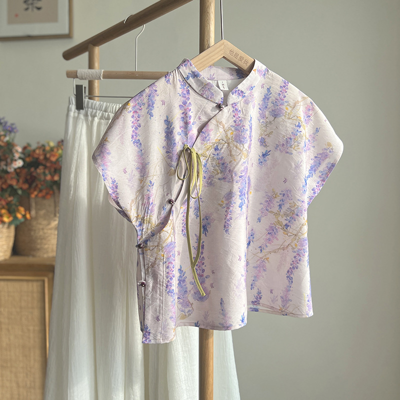3497 "Violet Vine" Original Summer New Chinese Style Retro Shirt Elegant Leveled National Style Top